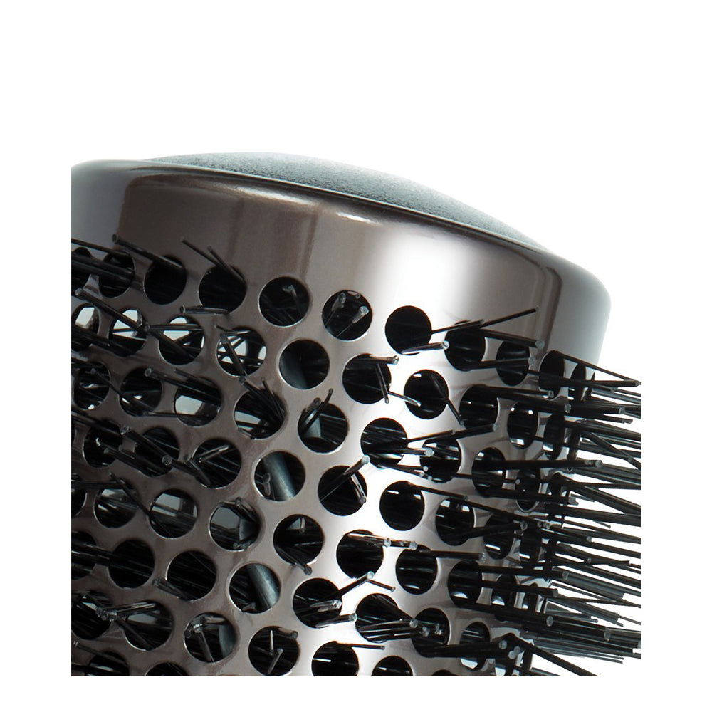 Faglegur kringlótt bursti með keramikhúð sem gefur frá sér neikvæðar jónir, lokar hár nagla, lokka í raka og dregur úr frizz og flyaway hár. Keramikhúðin tryggir hratt og jafnvel hitadreifingu og eykur þurrkunartíma. Með vinnuvistfræðilegu, óaðfinnanlegu handfangi og stórum kringlóttum götum til að hámarka loftstreymi. 43mm þvermál er tilvalið að blása miðlungs til sítt hár.